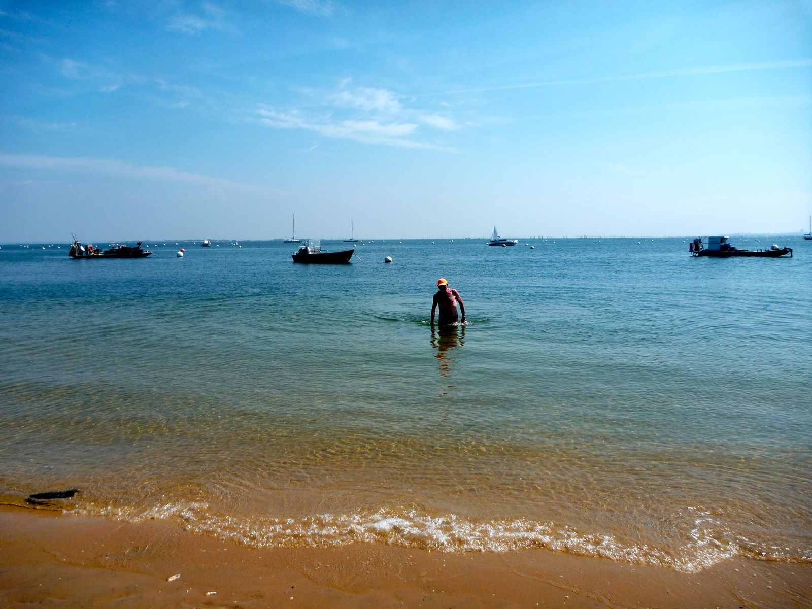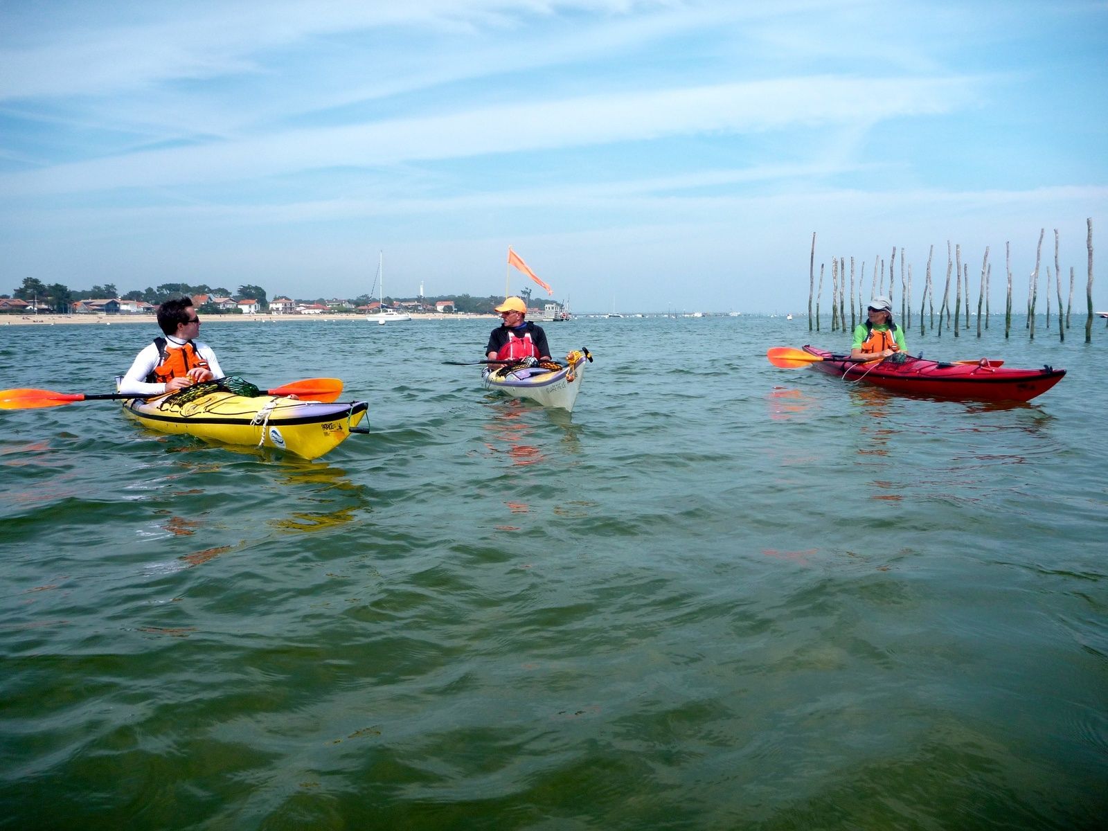 Belle météo pour cette sortie avec pique-nique jusqu'au village de l'Herbe sur la presqu'île du Cap-Ferret. Cinq kayakistes seulement, Cathy, Domi, Remy, Manu et André L. Fait très rare pour un dimanche, il n'y avait qu'une seule représentante du beau sexe !!!!